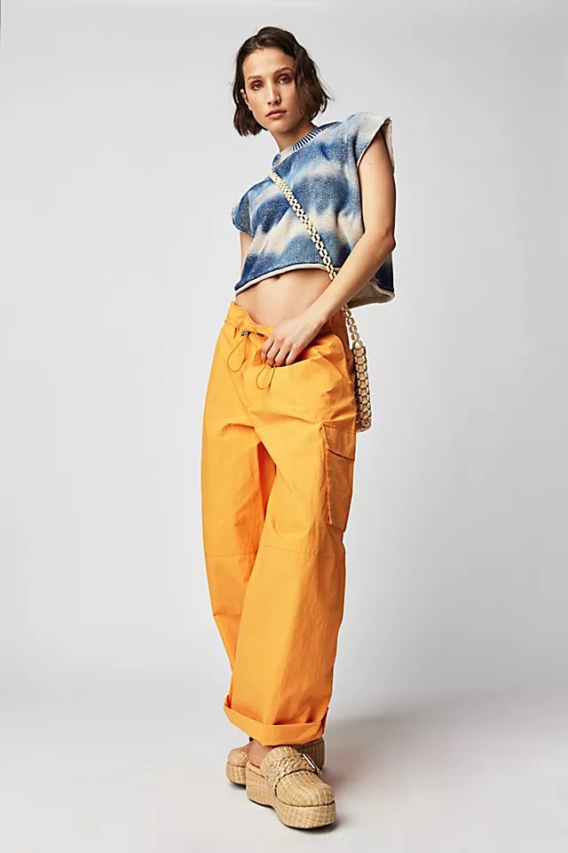 So cool and classic in a boxy. cropped fit. this stand-out sweater vest is featured in a tie dyed knit fabrication with defined shoulders and raw hems for a true lived-in look.